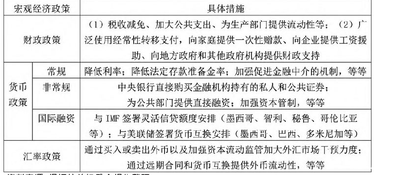就财政政策而言,在支出方面,多数国家宣布支持生产部门的措施(一般针对中小型企业或农业部门)以及制定基础设施投资和住房支出计划。在税收方面,措施包括通过改变扣除额、降低税率或增加免税额来削减个人所得税;通过新的免税、减税或加速折旧计划来削减公司税,等等。然而,应对危机期间的财政政策往往面临诸多挑战。例如,各国财政政策的操作空间差别很大,取决于顺境时积累的储蓄、支出的刚性、危机的持续时间以及谨慎借贷的范围;临时性或永久性的收支措施会对公共财政可持续性产生不同的影响;虽然减税措施较易实施,但在税率本来就低的国家,其影响可能有限,而且在不确定的情况下可支配收入增加并不一定会刺激需求,特别是减税的受益者属于高收入群体时;有针对性的补贴可能非常有效,但并非所有国家都建立了甄别和惠及社会项目潜在受益者的机制;联邦政府、州级及市级地方政府在人力或财政资源组织和调配上面临协调成本,增加了财政政策脆弱性等。