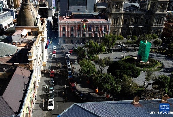 这是6月26日拍摄的玻利维亚拉巴斯总统府附近的广场(无人机照片)。新华社发(哈维尔·马马尼摄)